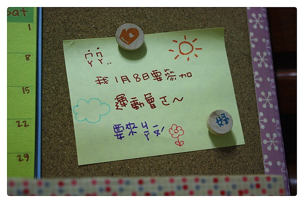 釘在桌曆留言版上