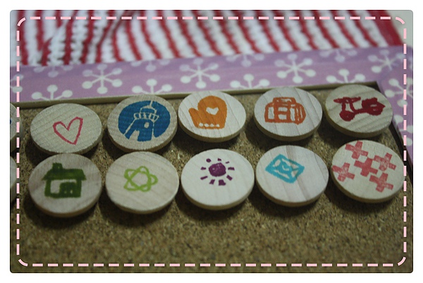 另外也用小木頭做成圖釘